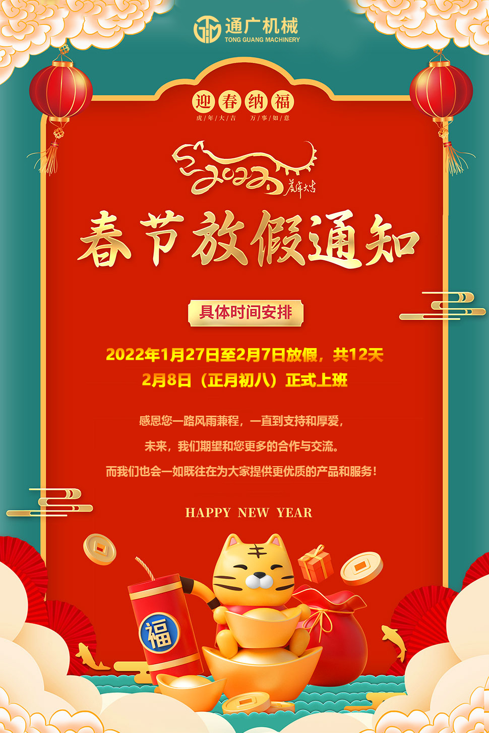 2022春節(jié)放假通知