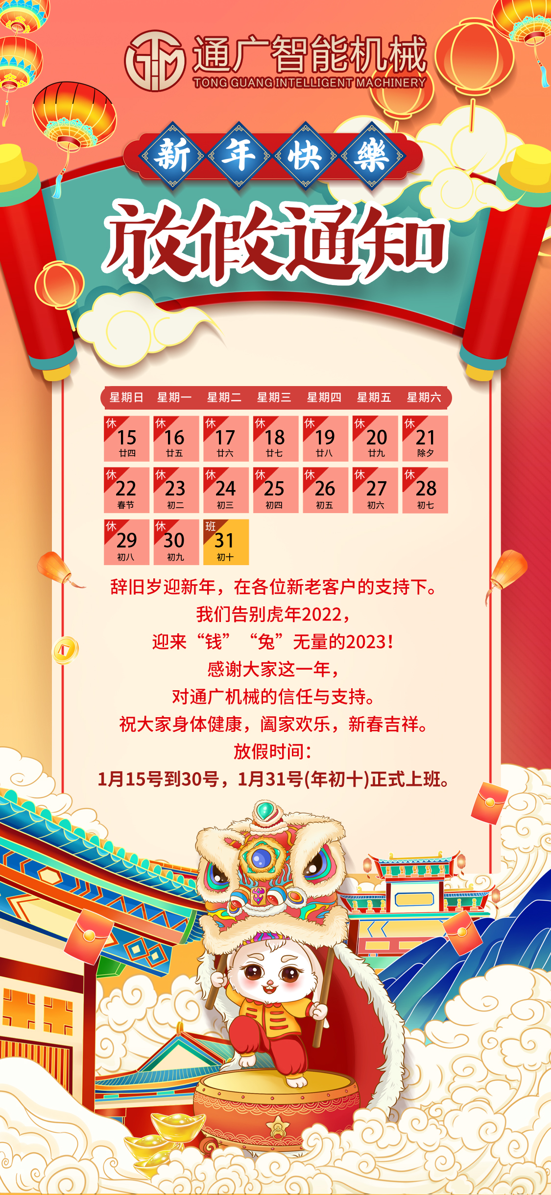 2023春節(jié)放假通知